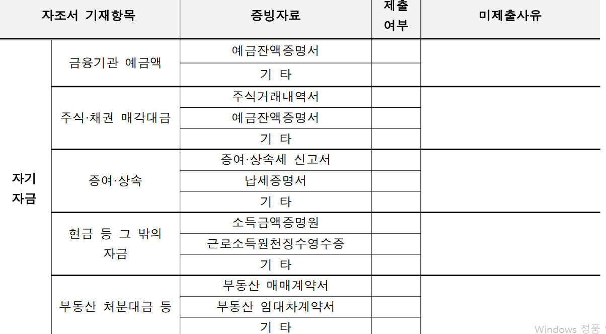①자기 자금에는 예금, 적금, 주식이나 채권 매각금액, 증여 및 상속받은 금액, 보유 중인 현금이나 금융상품 등이 속합니다.