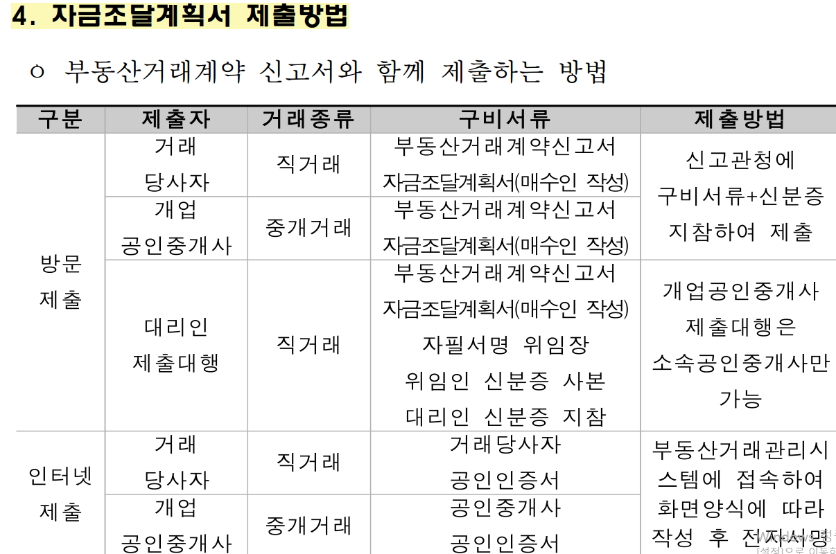 주택자금 조달계획서 제출은 보통 공인중개사를 통해 거래할 경우 부동산에서 매수인에게 계획을 물어보고 같이 제출하는 것이 좋습니다.