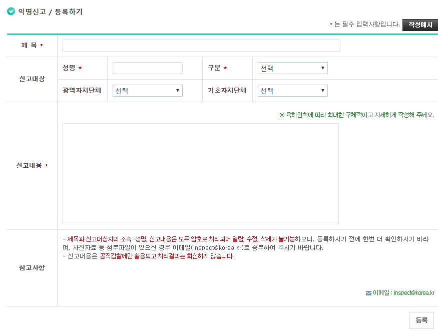 그러면 실명인증을 통해 국민임을 확인하고 익명으로 제보를 할 수 있습니다.