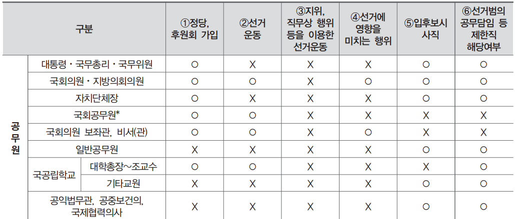 공무원이 지켜야할 기준 모든 공무원이라고 정당 가입 및 선거운동이 금지되는 것은 아닙니다.