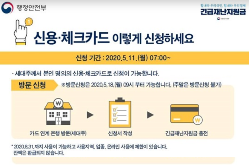 신용체크카드 신청방법 신용카드나 체크카드로 긴급재난지원금을 받는 방법을 알아볼까요.