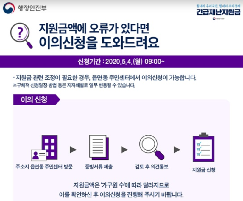 이의신청 지원금액에 오류가 있다면 당황하지 말고 이의신청을 하면 됩니다.