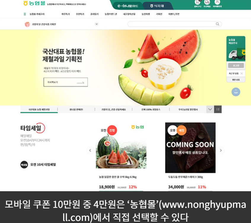 농협몰에서 나머지4만원은 이용하세요! 나머지 4만 원은 농협몰(바로가기) ID에 포인트가 직접 충전되는 방식으로 지원됩니다.