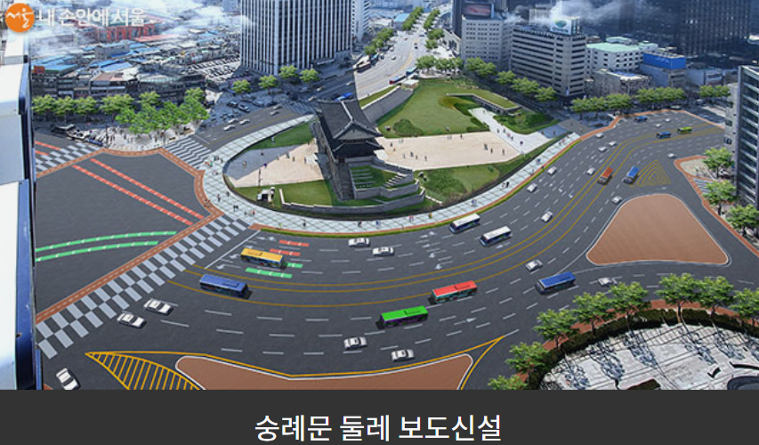 숭례문둘레 보도 신설/ 서울시 또한 숭례문 둘레 보도를 신설하여 광화문에서 숭례문을 거쳐 남산, 서울로 7017까지 걸어서 갈 수 있는 관광 명소가 될 것으로 기대하고 있습니다.