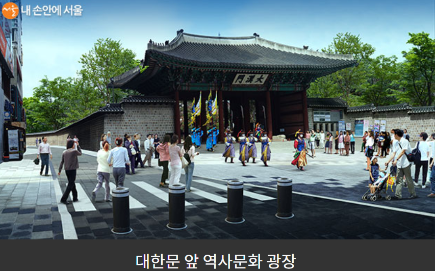대한문 앞 / 서울시; 대한 문 앞 광장은 2배로 확장하여 역사문화광장, 숭례문 구간 보행로까지 연결한다고 밝혔는데요,