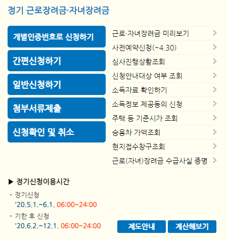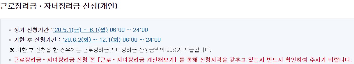 자녀 장려금 정기 신청기간은 2020.5.1(금)~6.1(월) 06:00~24:00까지 입니다.