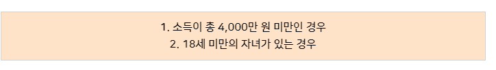 ②소득이 총 4000만 원 미만의 경우여야 합니다.