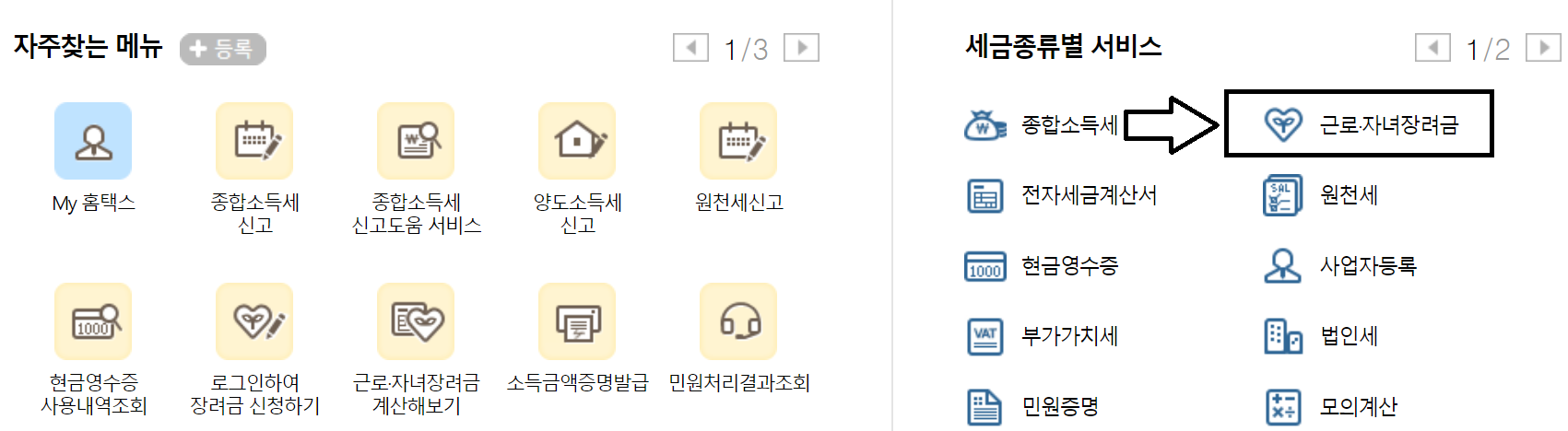 자녀장려금 신청을 위해서는 PC로 홈택스(바로가기)를 들어가거나 모바일로 손택스를 들어가 주면 됩니다.