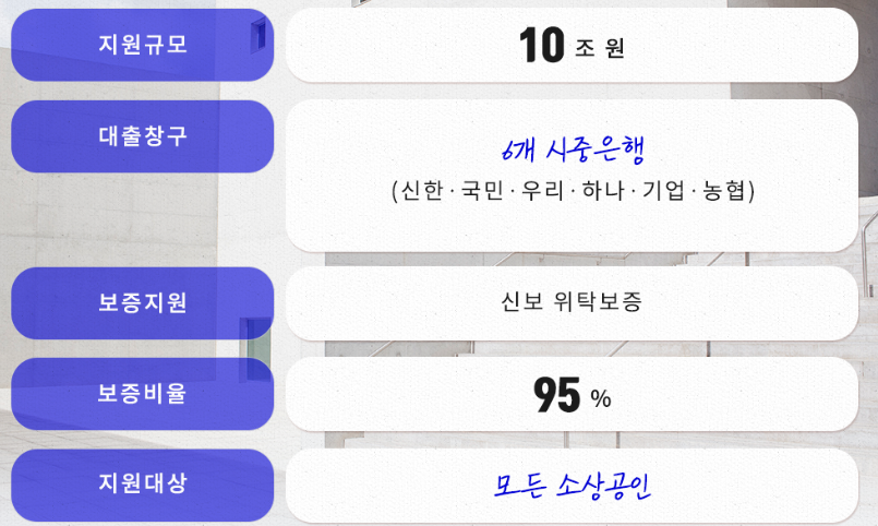 95%의 보증비율을 바탕으로 모든 영세사업자가 지원대상입니다.