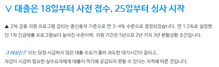18일 시작, 25일 심사시작 ▼코로나2차대출 신청기간은 어떻게 되나요?