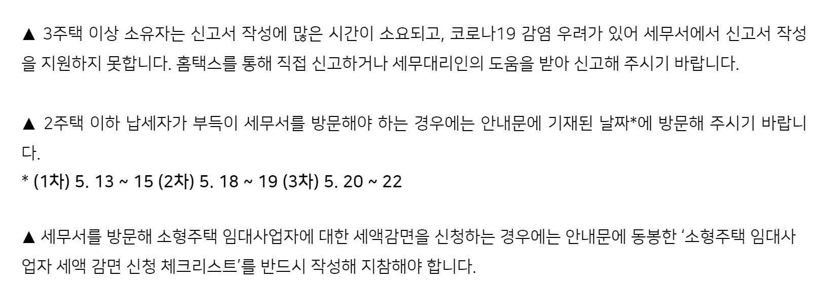 단, 3 주택 이상의 경우 직접적으로 세무서에서 신고서 작성을 지원 못하니 대리인을 받아 이용하라는 것이 국세청입니다.