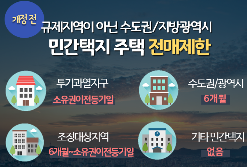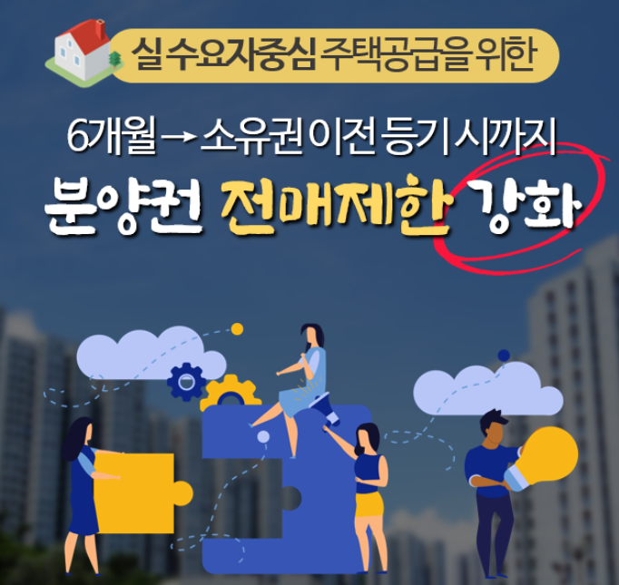 분양권 전매제한 강화 소유권이전등기시점까지 / ktv 이미 수도권 및 지방 광역시, 투기과열지구, 조정대상지역에 공급되는 민간택지 주택에 대해서는 전매제한이 실시되고 있었습니다.