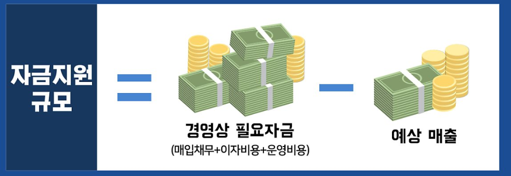 지원규모는 예쌍 매출흐름을 고려해 경영상 필요한 자금에서 예상 매출을 제외한 금액을 지원해주며