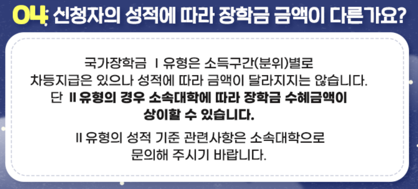 한국장학재단 Q. 성적에 따라 장학금 금액이 다른가요?