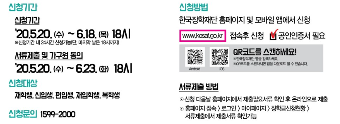 2020 국가장학금 2학기 신청기간 확인하세요