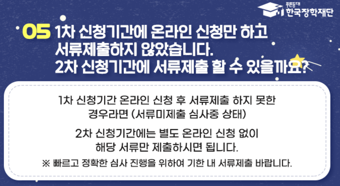 게다가 1차 신청기간에 서류제출을 못한 경우라면 2차 신청기간에는 서류만 제출하면 됩니다.