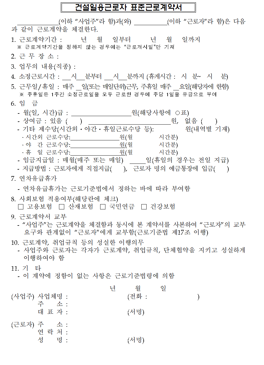 건설표준근로계약서 이를 통해 일당을 받아가는 형식이 아닌 주급으로 전면 전환하는 게 최종 목표입니다.
