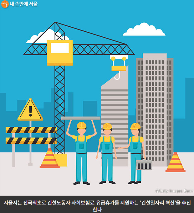 이에 서울시에서는 전국최초로 건설노동자에게 사회보험료를 전액 지원하기로 하였습니다.