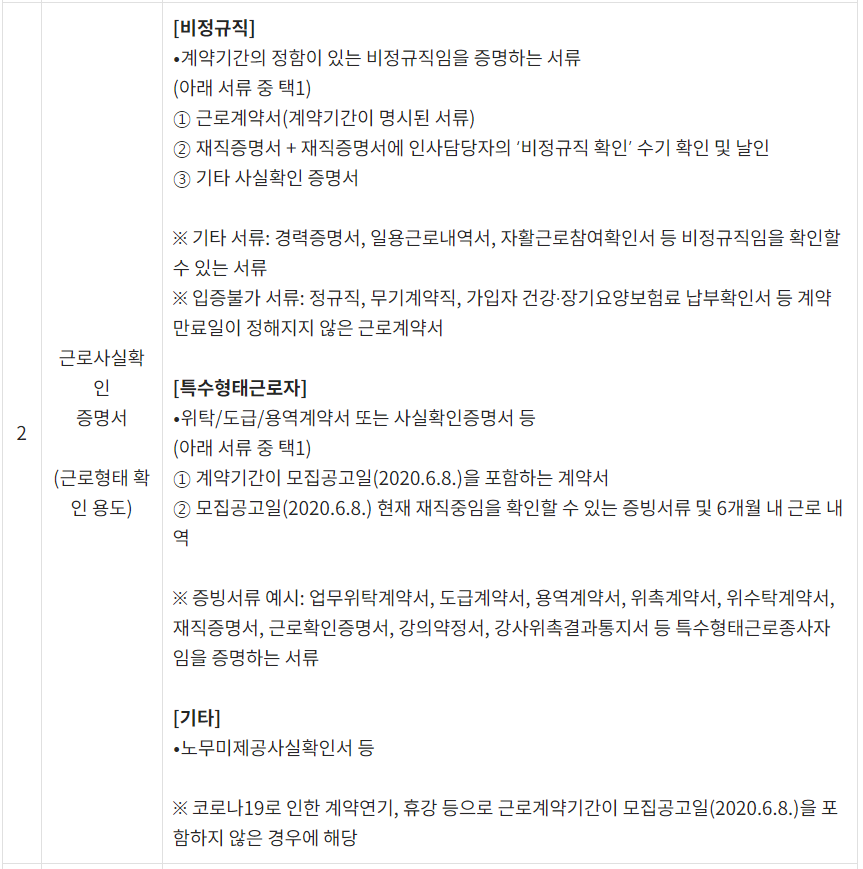 둘째, 노동형태에 따라 필요로 하는 근로사실확인서가 필요합니다.