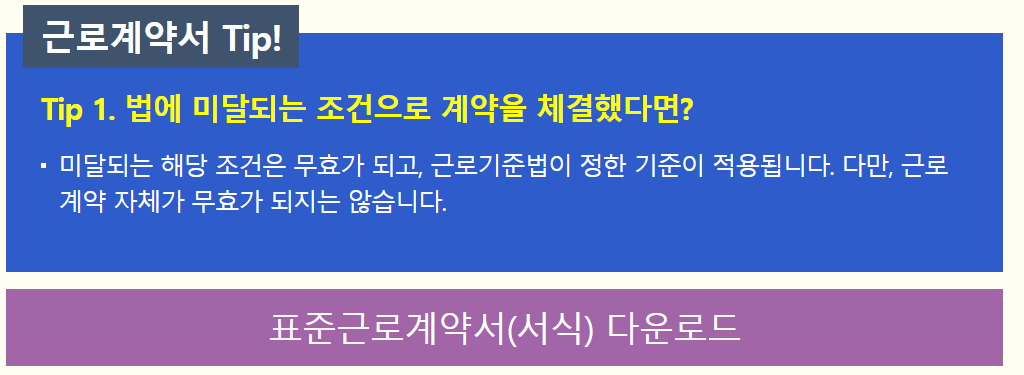 근로계약서 tip 고용노동부 ▼고용노동부에서 표준근로계약서 무료 양식을 제공합니다.
