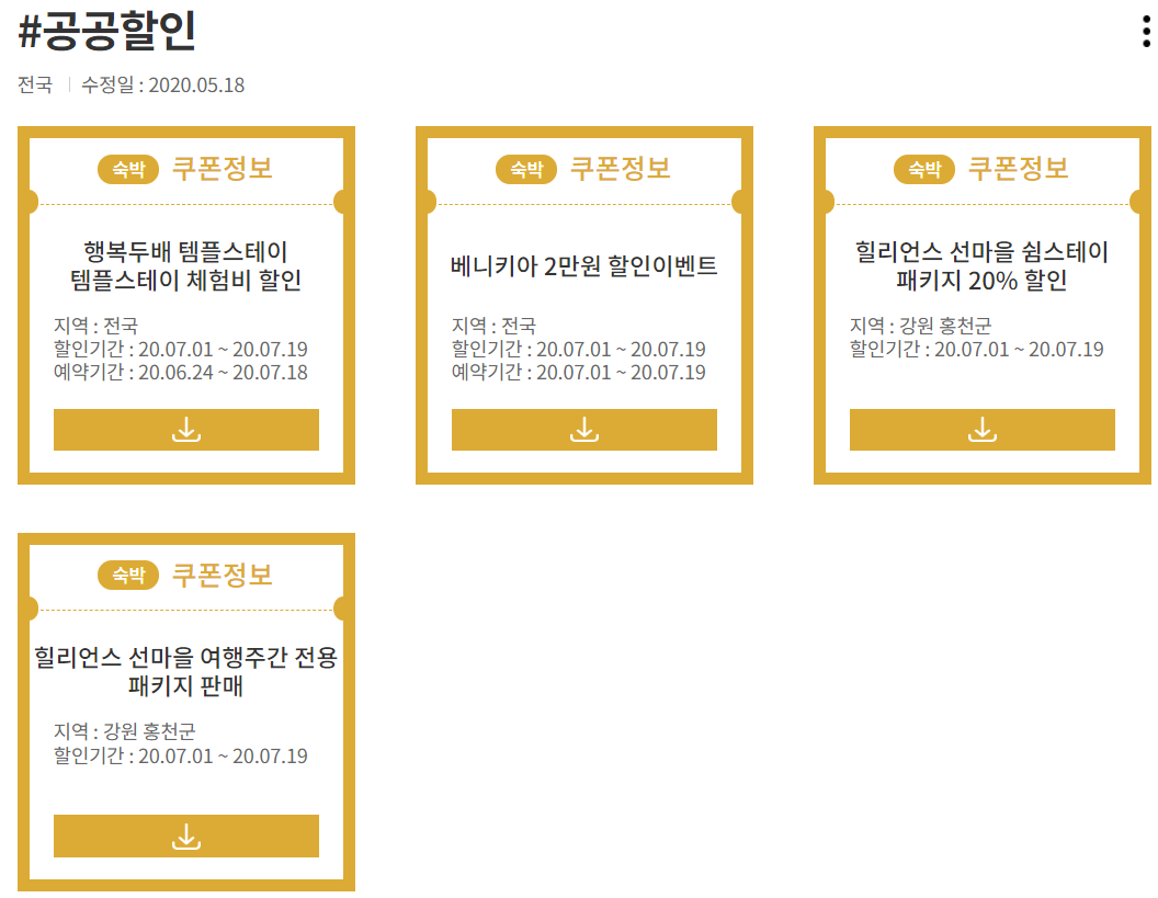 이에 다양한 여행주간 교통할인 혜택, 숙박 할인쿠폰, 공공할인 정보들을 한눈에 알아볼 수 있게 제공하고 있는데요.
