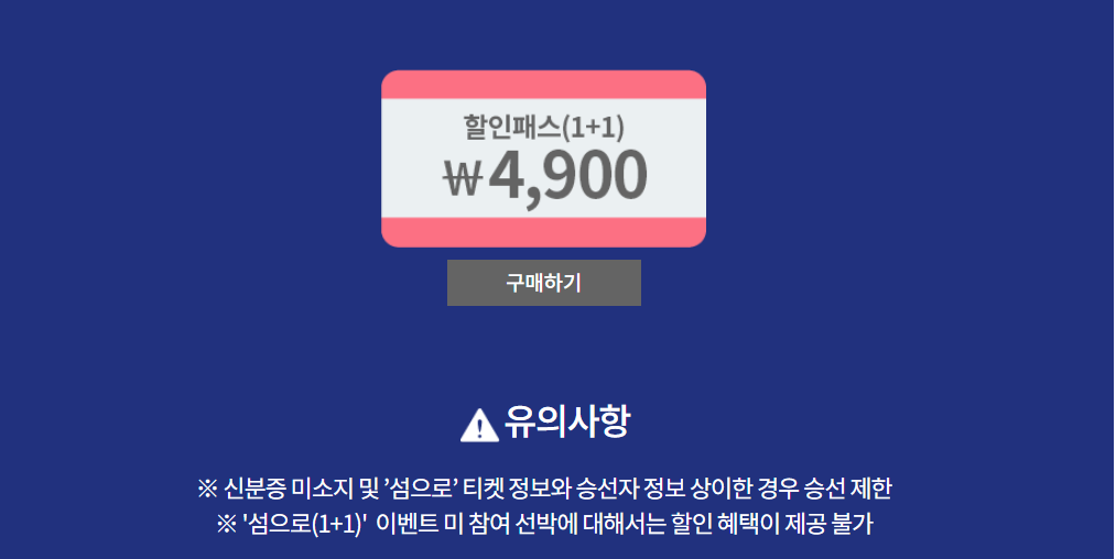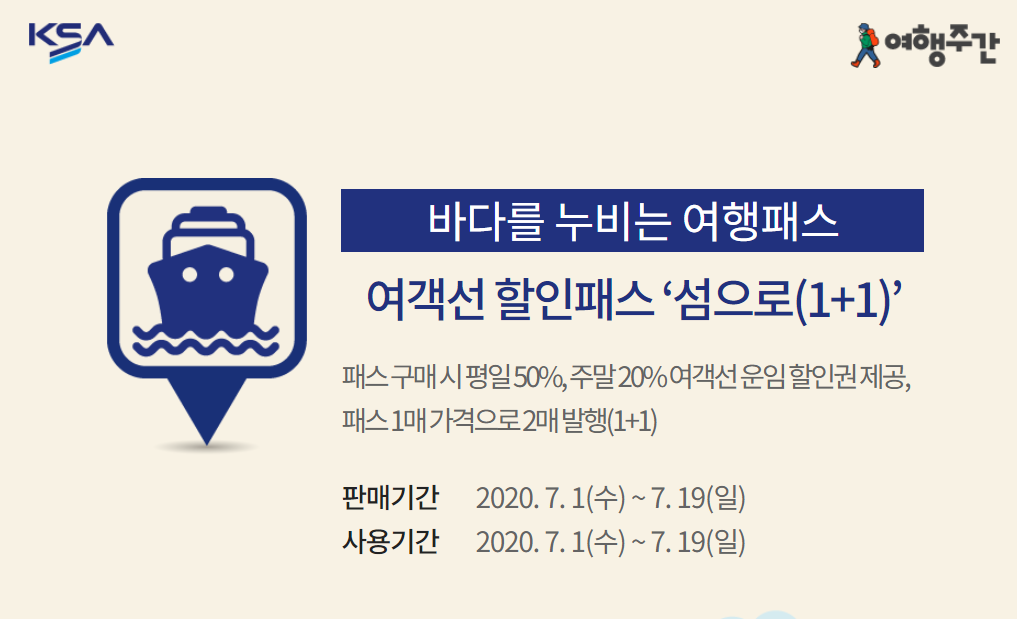 평일에는 50%, 주말에는 20%까지 여객선 운임 할인권을 이용할 수 있는 기회가 제공된다고 합니다.