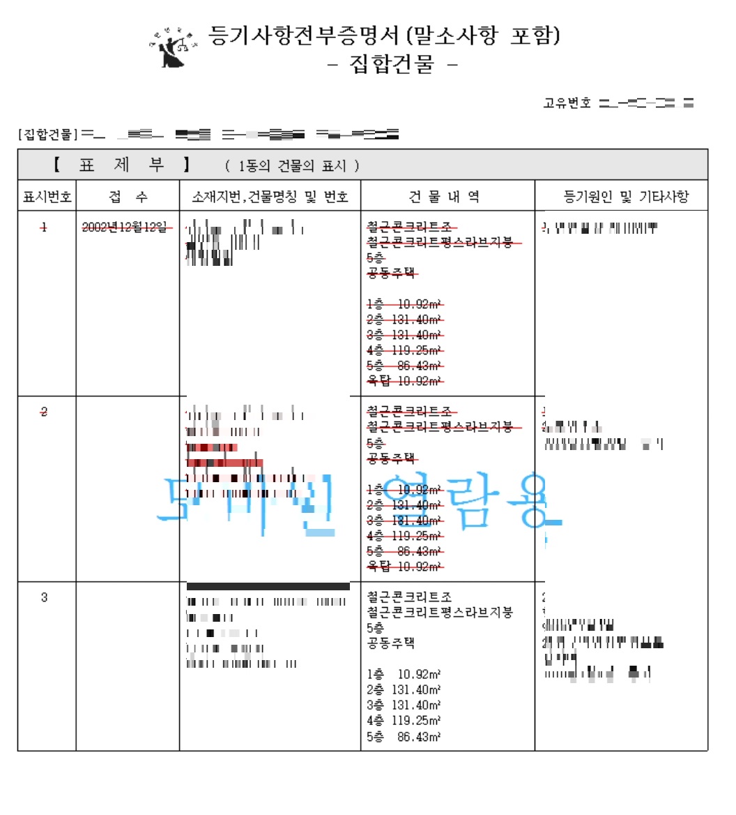 기록이 완전히 삭제되지 않기에 추후에라도 살고자 하는 건물 등본상에서 적혀있다면 유의해야겠죠.
