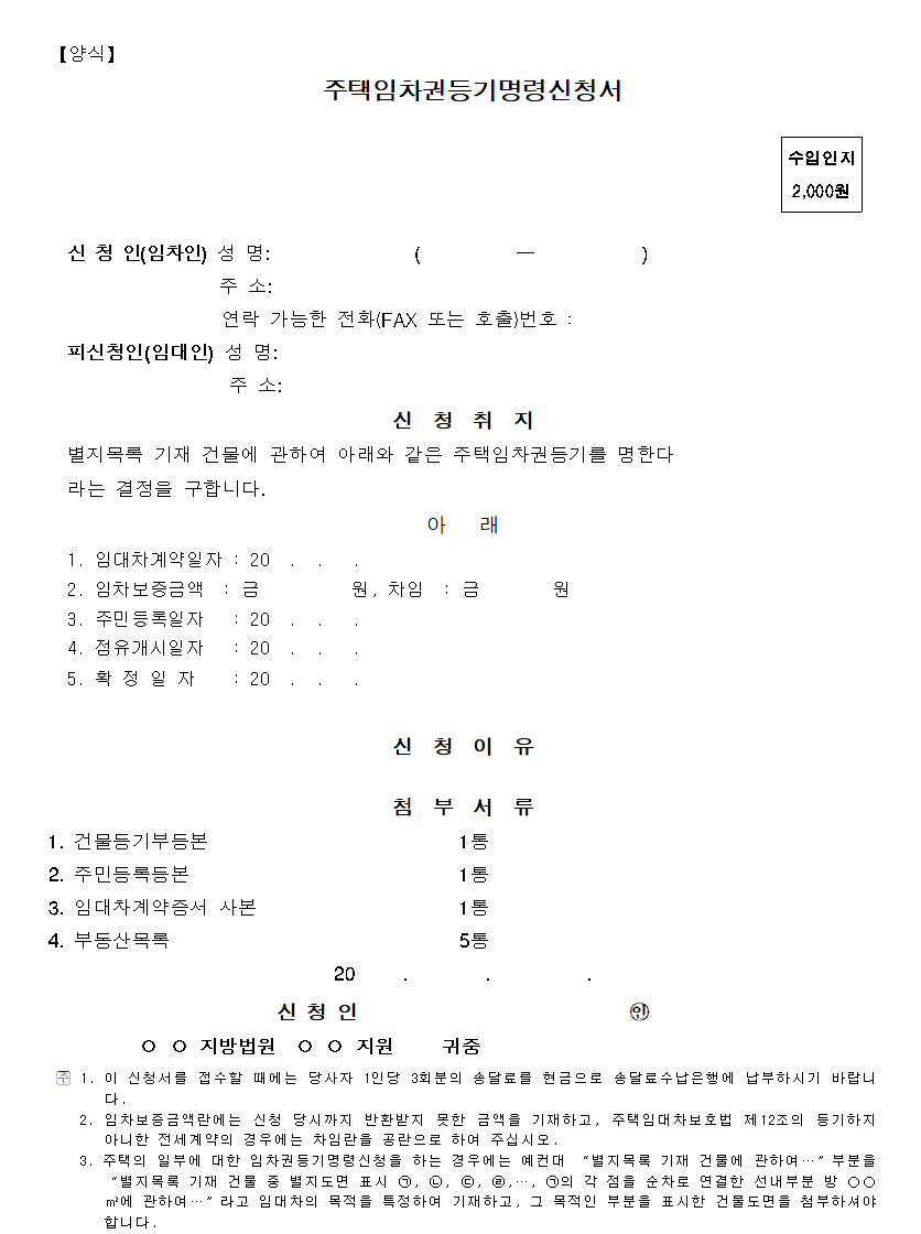 ▼임차권등기명령 신청서와 준비서류 확인하세요.