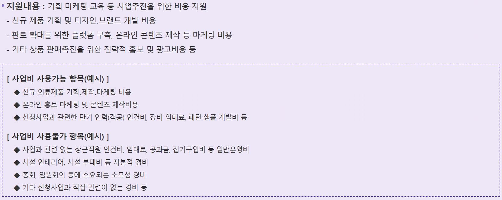 하지만 사업과 관련 없는 인건비, 임대료, 인테리어, 회의 등 소모성 경비로 사용은 불가합니다.