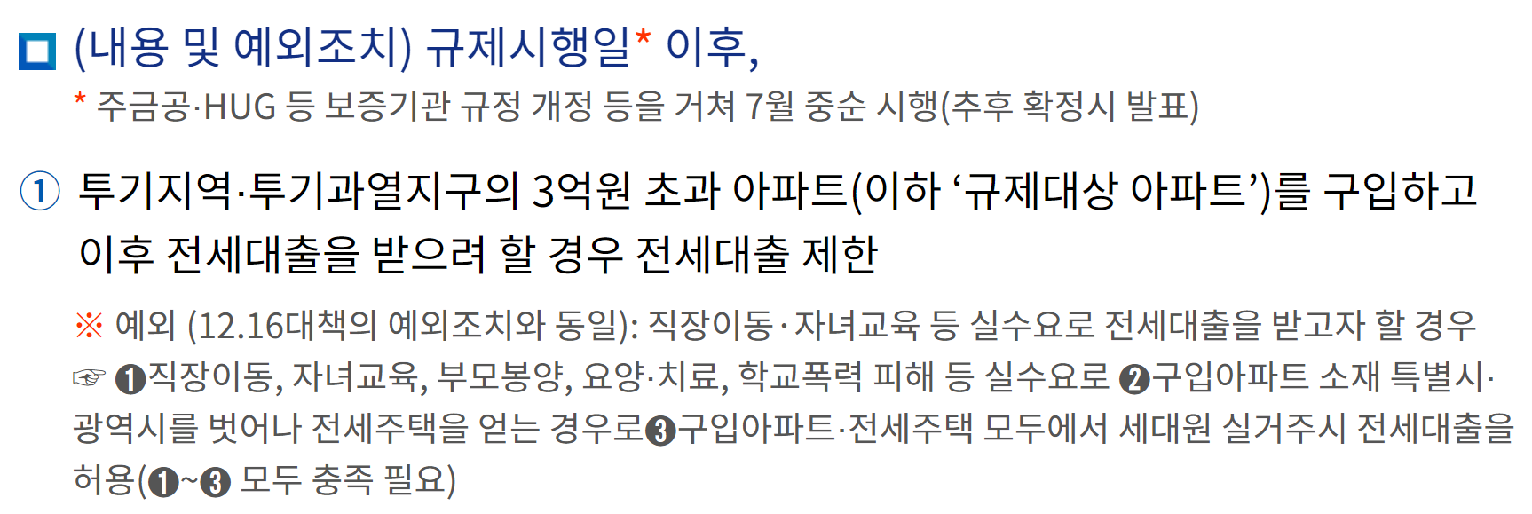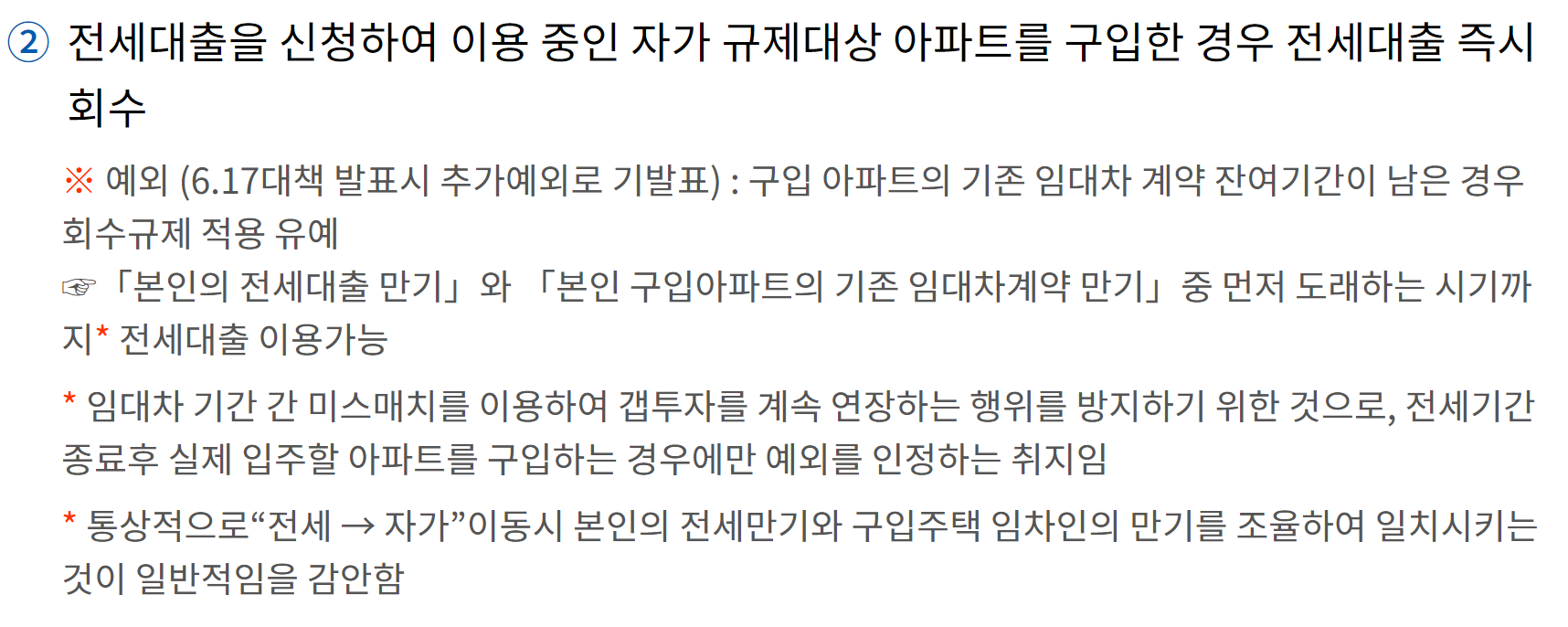 ▼6.17 부동산 대책 전세대출 규제 적용 및 예외상황