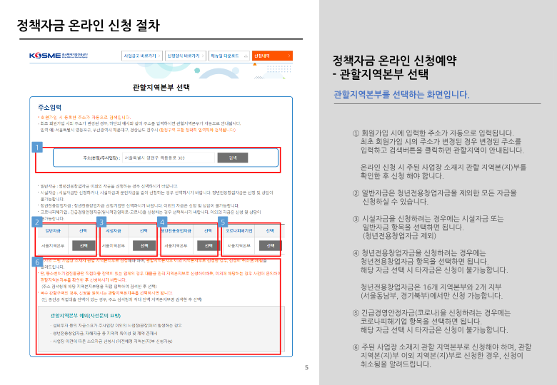 중소벤처기업진흥공단 정책자금 신청하기 ▷온라인 신청을 하게 되면 로그인을 하고 먼저 자신의 창업지의 관할지역본부를 선택하여줍니다.