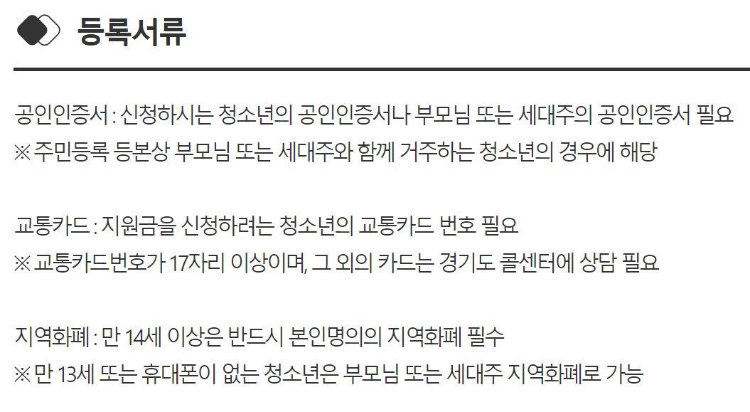 준비서류 / 경기도청 경기도에 거주하며 대중교통을 이용하는 청소년이라면 반드시 내용을 확인해서 교통비 지원사업에 참여해야겠습니다.