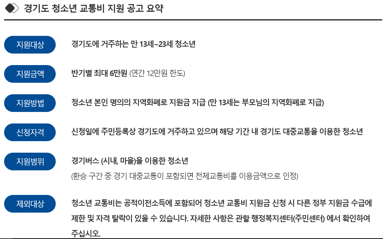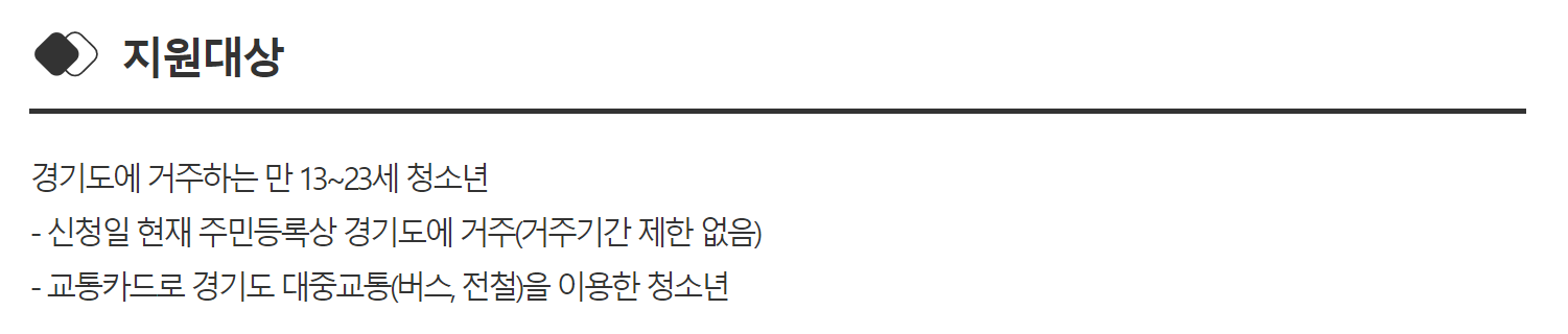 당연히 경기지역 청소년들을 대상으로 하며 중요한 나이 제한과 교통카드 이용 조건이 있습니다.