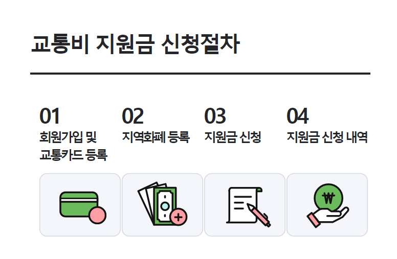교통비 지원금액을 현금으로 주는 것이 아니라 지역경제 활성화 정책과 더불어 대중교통 이용금액의 일부를 지역화폐로 지급합니다.