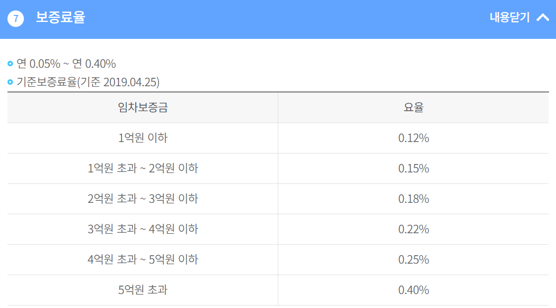 보증료율 / 한국주택금융공사 [임차보증금 범위] 총 6구간!