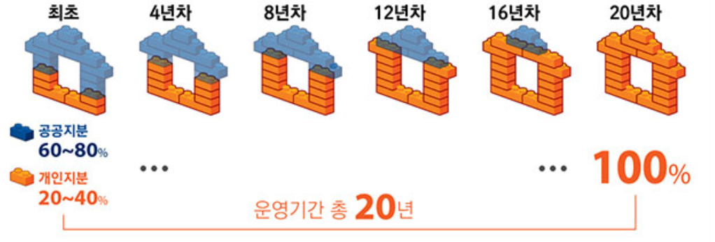 4년마다 10~20%씩 추가로 주택 가격을 납부하면서 지분을 채우게 됩니다.