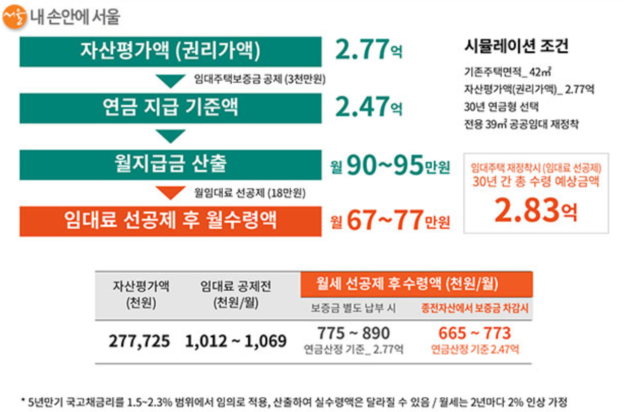 ⓒ서울시 서울 주택도시공사의 연금형 소규모 주택정비사업 월 지급금 시뮬레이션 결과에 따르면