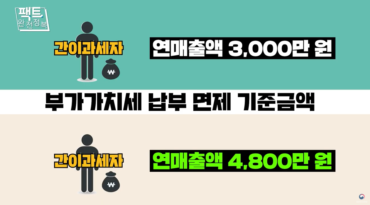 · 간이과세 기준금액 : 연 매출액 4,800만 원