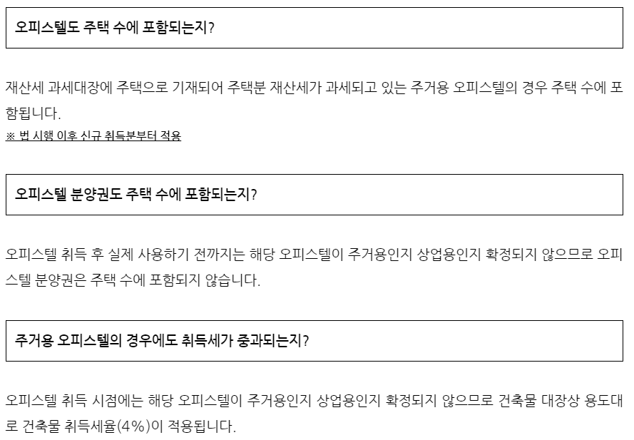 Q. 주거용 오피스텔의 경우 취득세가 중과됩니까?