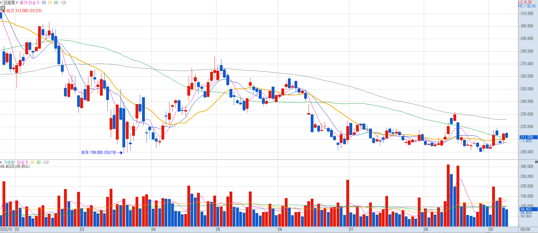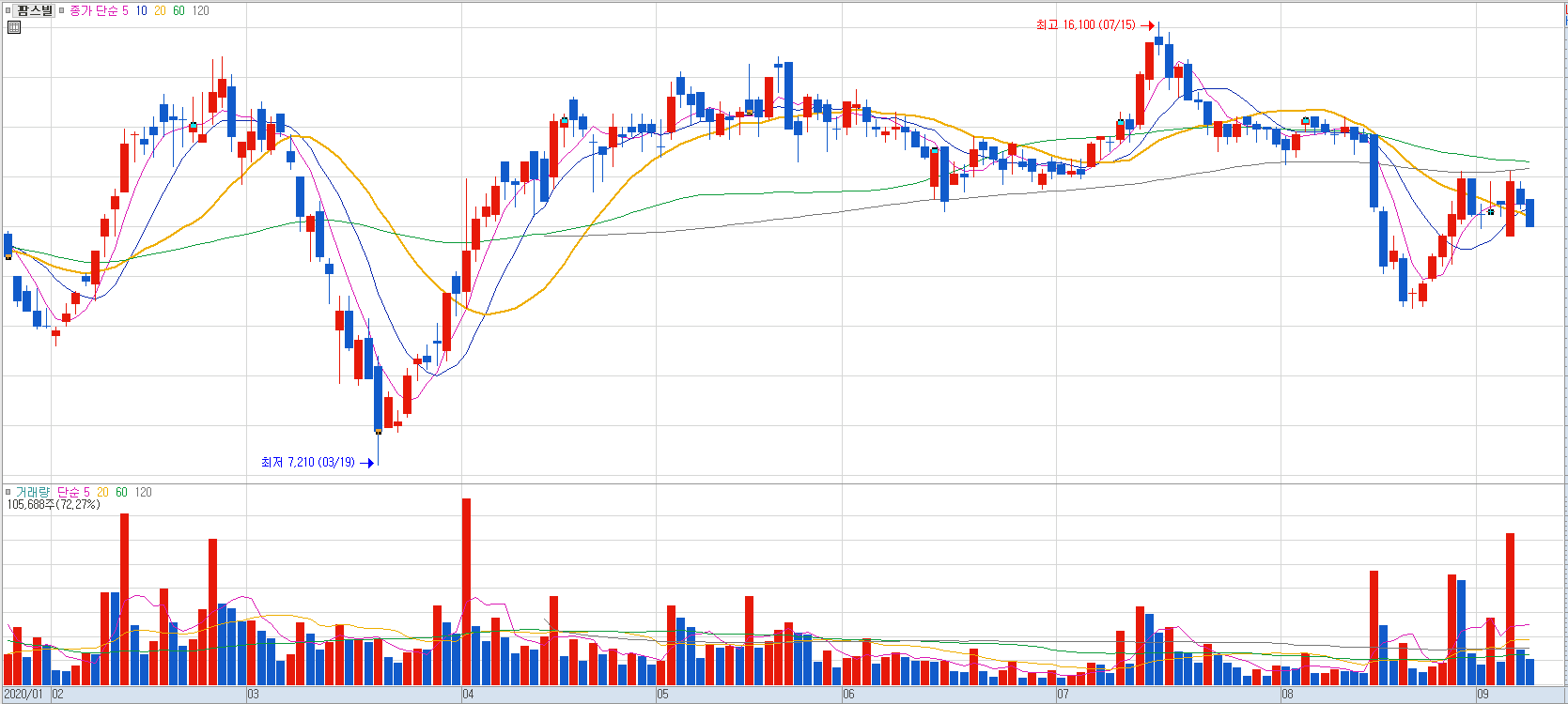 차트를 보면 9월 들어 거래량이 폭발적으로 늘어나면 전 고점 회복이 멀지 않았다는 것을 확인할 수 있습니다.