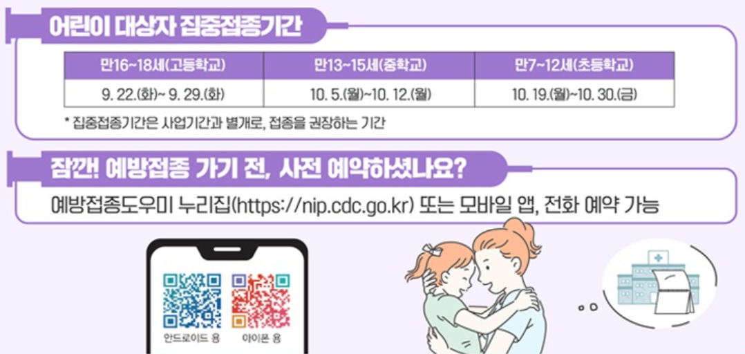 따라서 만 18세 이하 청소년까지 모두 무료 예방접종이 되는 것입니다.