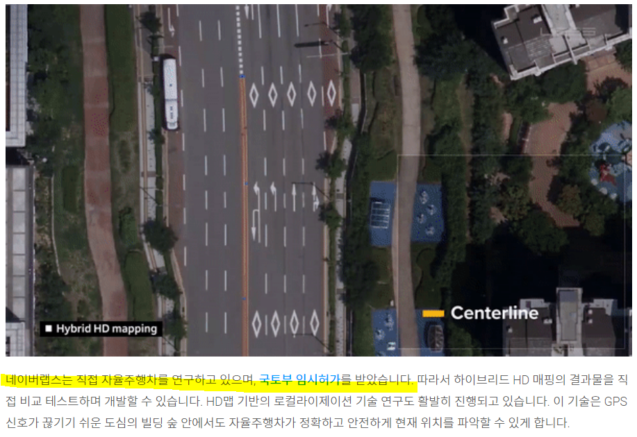 그 결과가 하이브리드 HD 매핑인데요. 항공사진과 MMS 데이터를 융합해 고정밀 지도를 만드는 독창적인 기술을 자랑합니다.