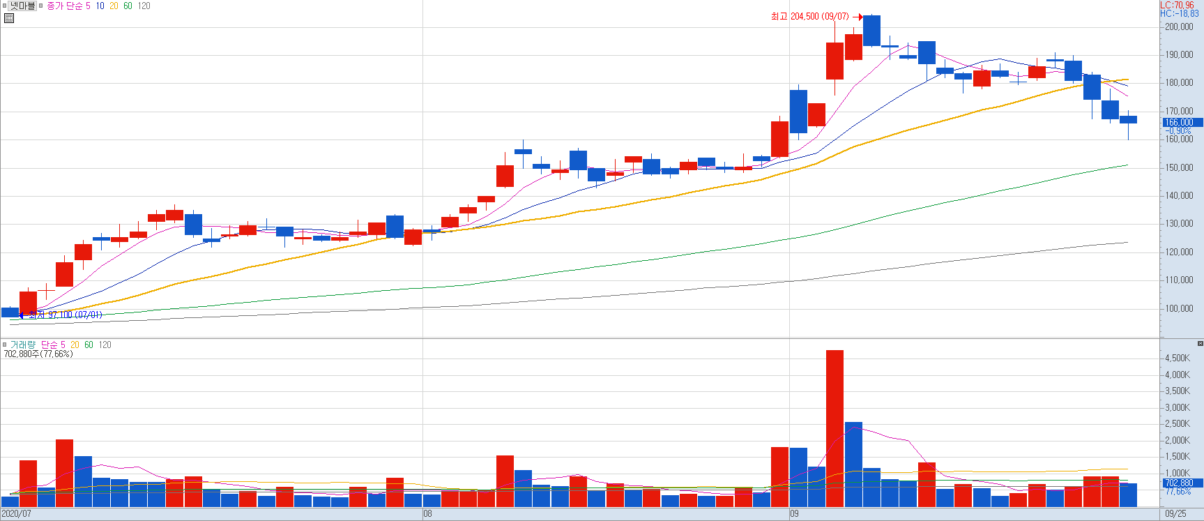 회사측에서 내년 상반기정도 넷플릭스나 다른 OTT서비스를 통해 방영될 것이라 하여 요즘들어 거래량이 크게 늘었습니다.