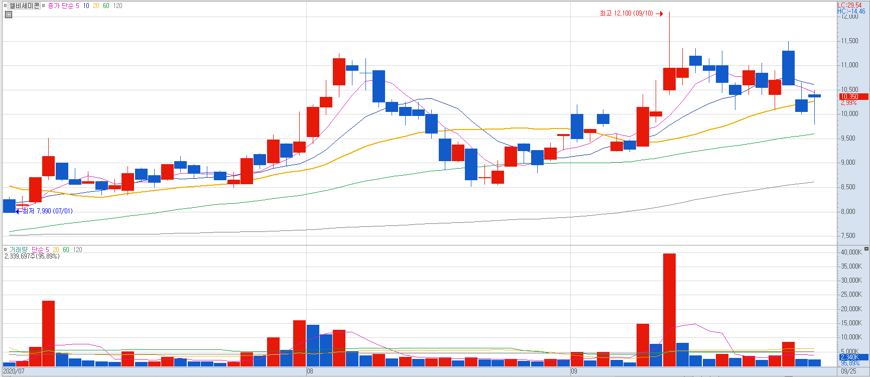 다만 현재는 빅히트 지분을 매각한 것으로 보이는 징조가 있어서 BTS관련주로 매력도는 초반에 비해 떨어지지만 반도체 공장 증설 대한 투자 열기가 높아져 최근들어 주가가 많이 상승하였습니다.