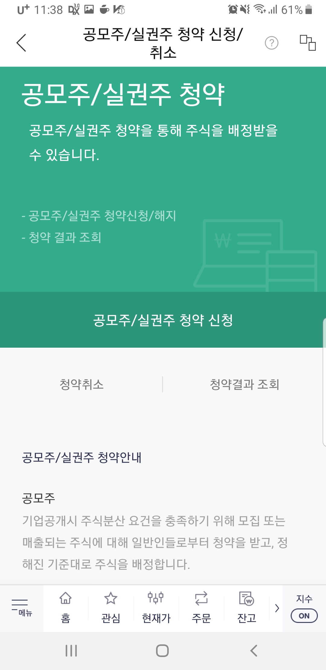 [청약]부분을 눌러 들어가게 되면 공모주 현황을 한눈에 살펴볼 수가 있는데요.
