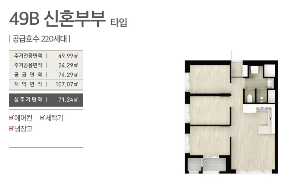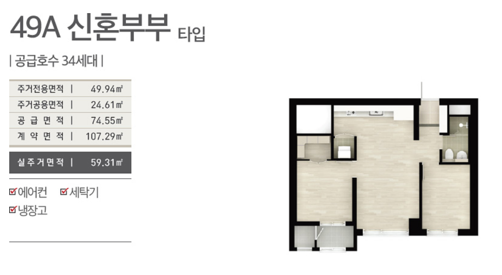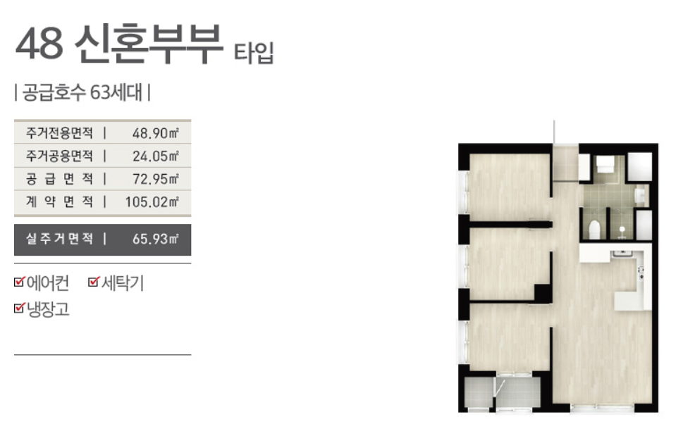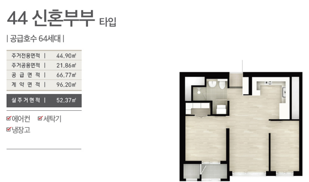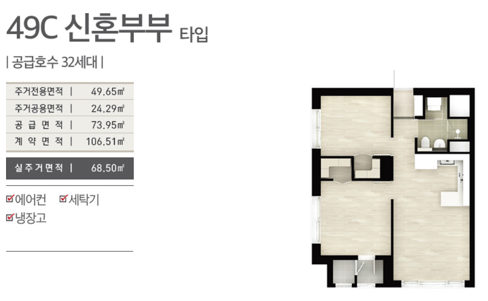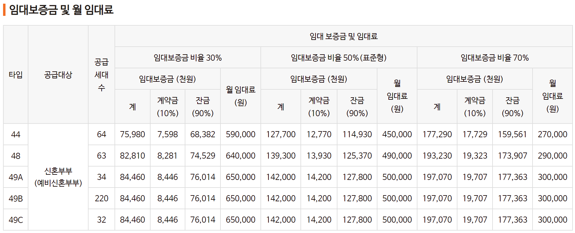 신혼부부의 경우는 44~49c타입에 대해 제공을 받으며 역시나 임대보증금 비율에 따라