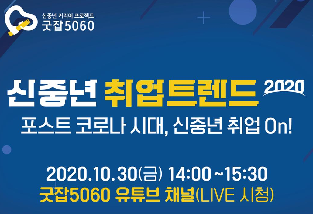 서울시에서 신중년 세대를 위한 맞춤형 취업트렌드 박람회가 굿잡 5060 유튜브 채널을 통해 생방송 라이브 진행합니다.