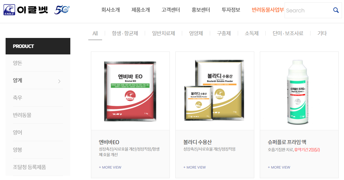 이글벳은 기존 동물용 백신, 치료제뿐만 아니라 반려동물 시장에 참여하여 애완동물의 약품 및 관련 용품 또한 제조하여 유통하기도 합니다.