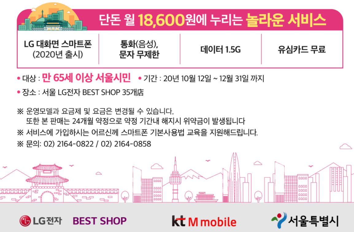 어르신 맞춤형 요금제는서울시내 35개소 하이프라자 직영 LG베스트샵에서 가입할 수 있습니다.