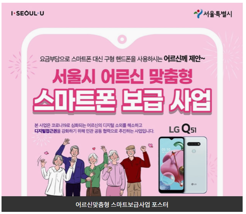 어르신 맞춤형 스마트폰 보급은 같은 뜻을 모은 서울시와 LG전자, KT엠모바일(알뜰폰 통신사), 하이프라자(유통사) 4개 기관의 협력으로 추진됩니다.